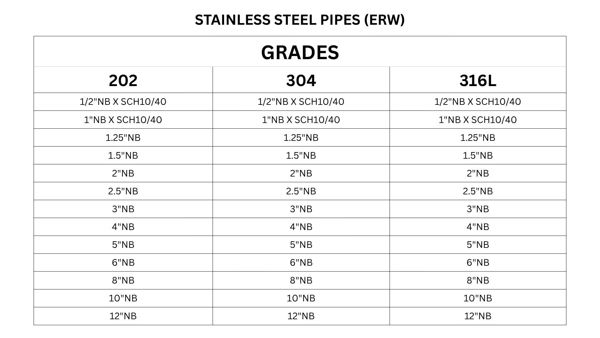 We offer stainless steel pipes in multiple grades to meet both commercial and industrial requirements: